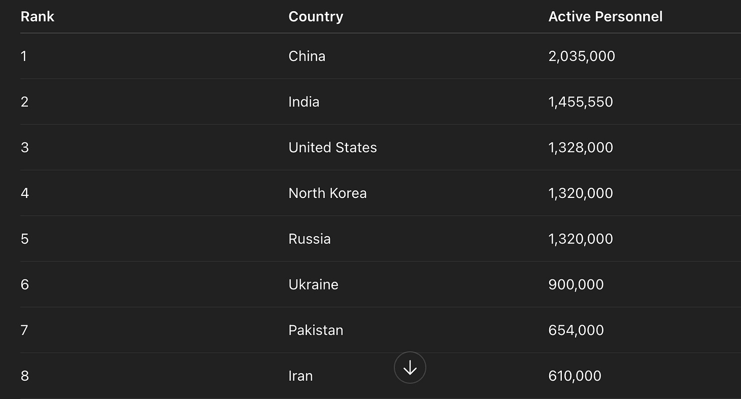 🌍 Part I: Global Military Rankings by Active Personnel (2025)