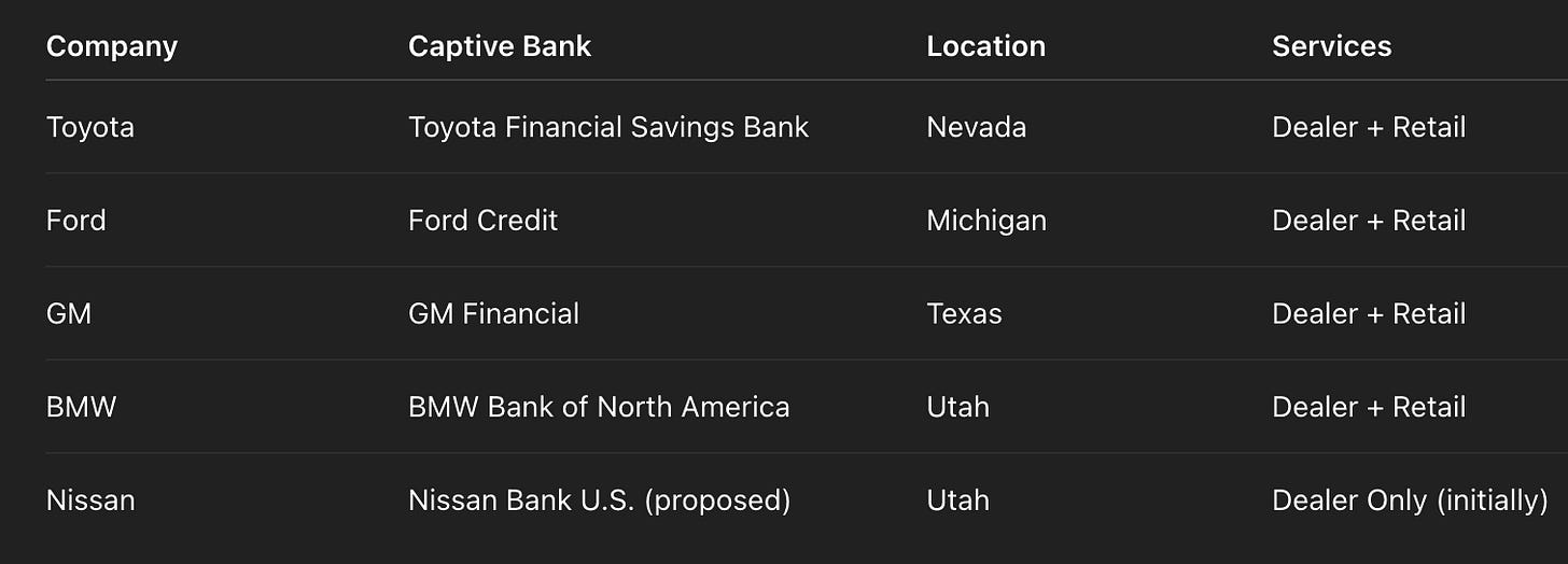 🔍 Competitive Context: Toyota, Ford, and the Captive Bank Model