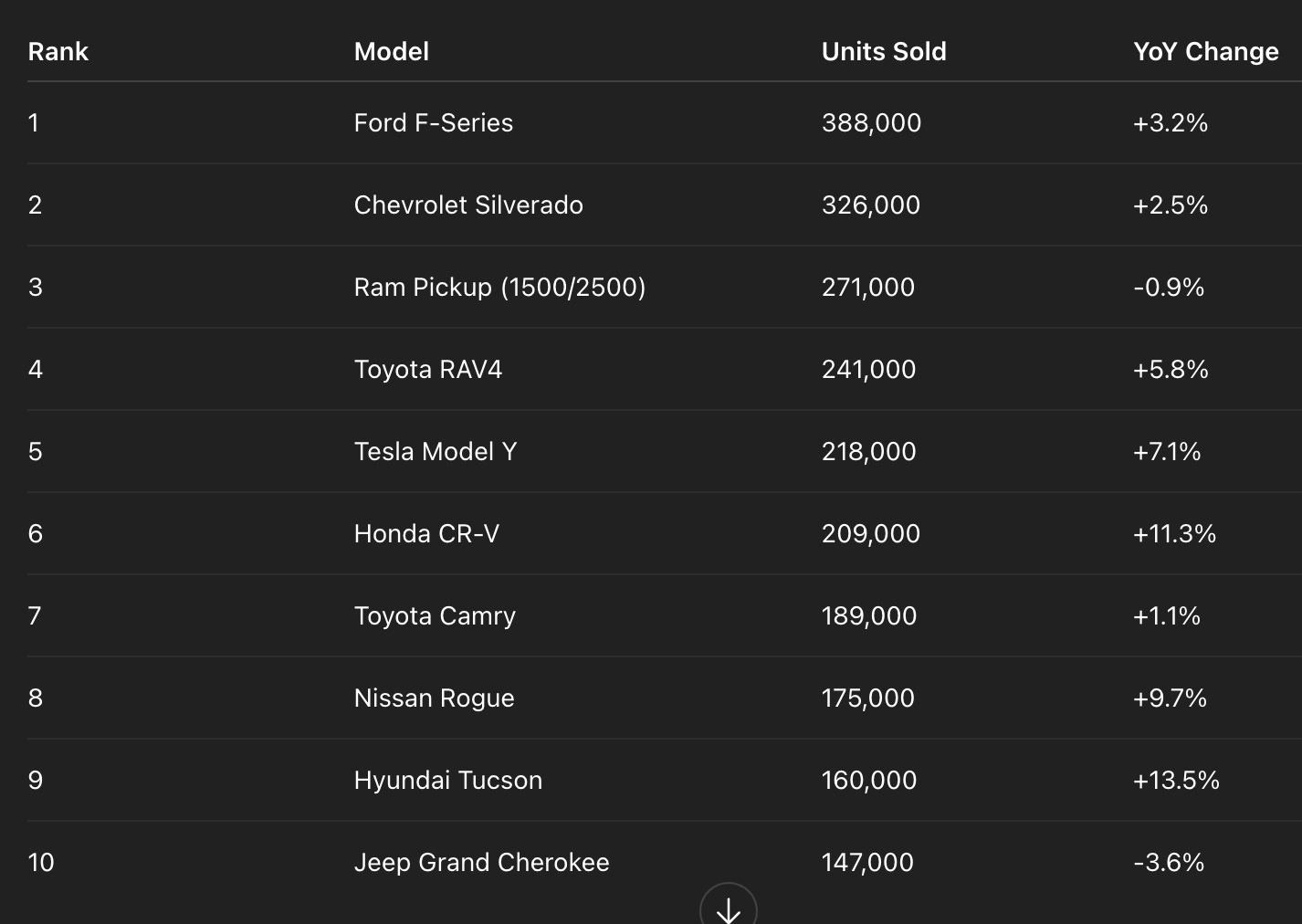Here’s the updated leaderboard by units sold (all models, including trucks and SUVs):