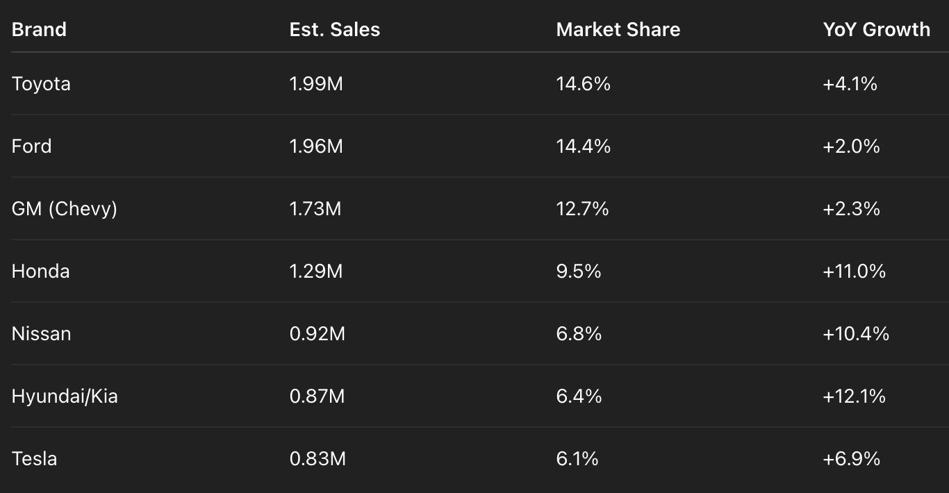 Here’s how the top automakers performed in H1 2025 based on total U.S. sales: