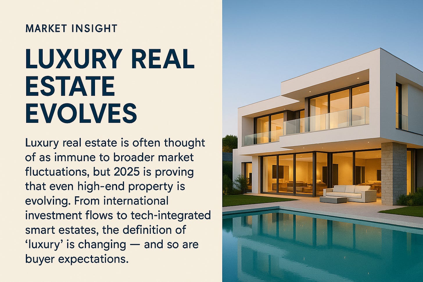 Luxury real estate is often thought of as immune to broader market fluctuations, but 2025 is proving that even high-end property is evolving. From international investment flows to tech-integrated smart estates, the definition of “luxury” is changing — and so are buyer expectations.